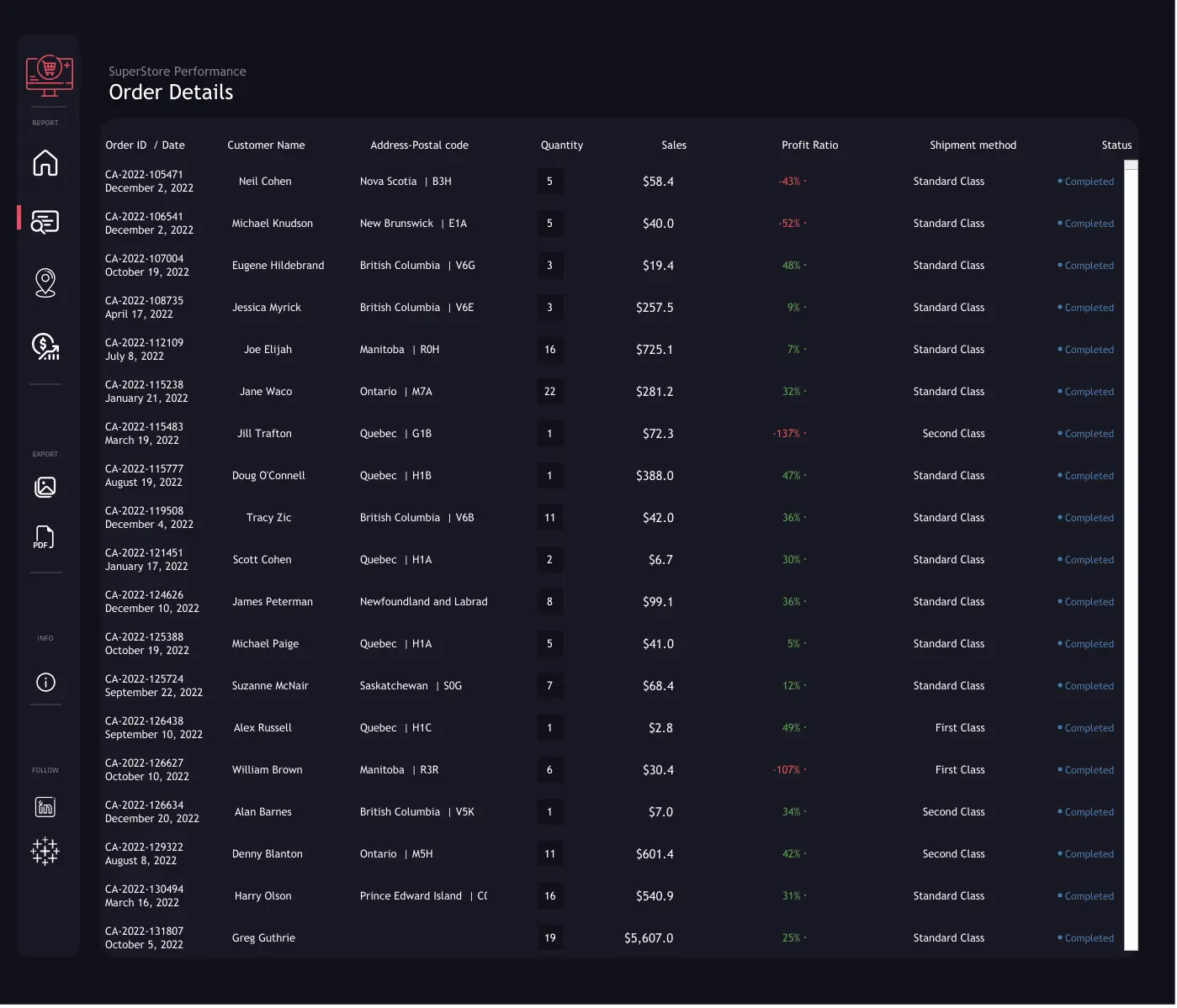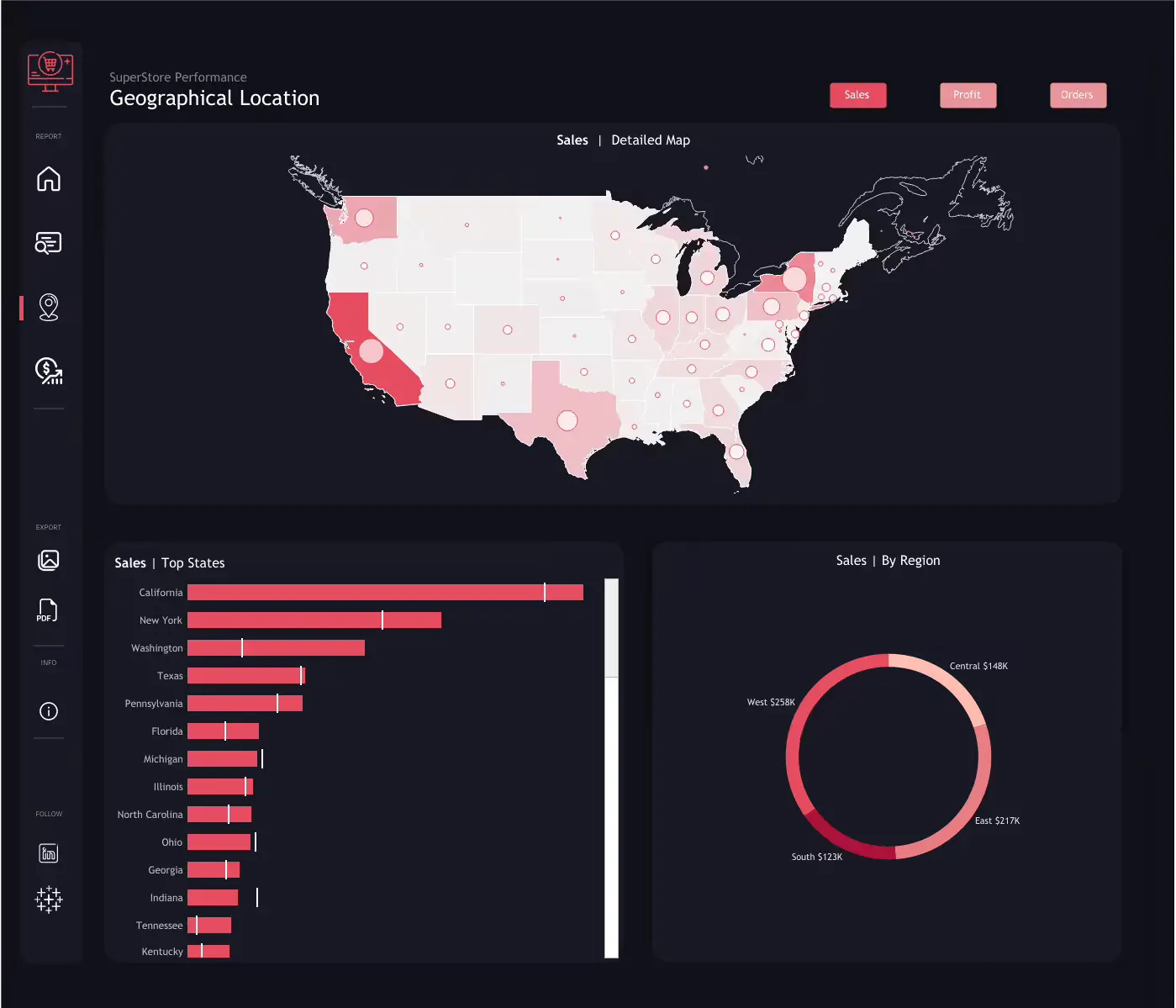 The dashboard provides an overview of the performance in terms of sales and profits, as well as customer behavior insights and product trends.